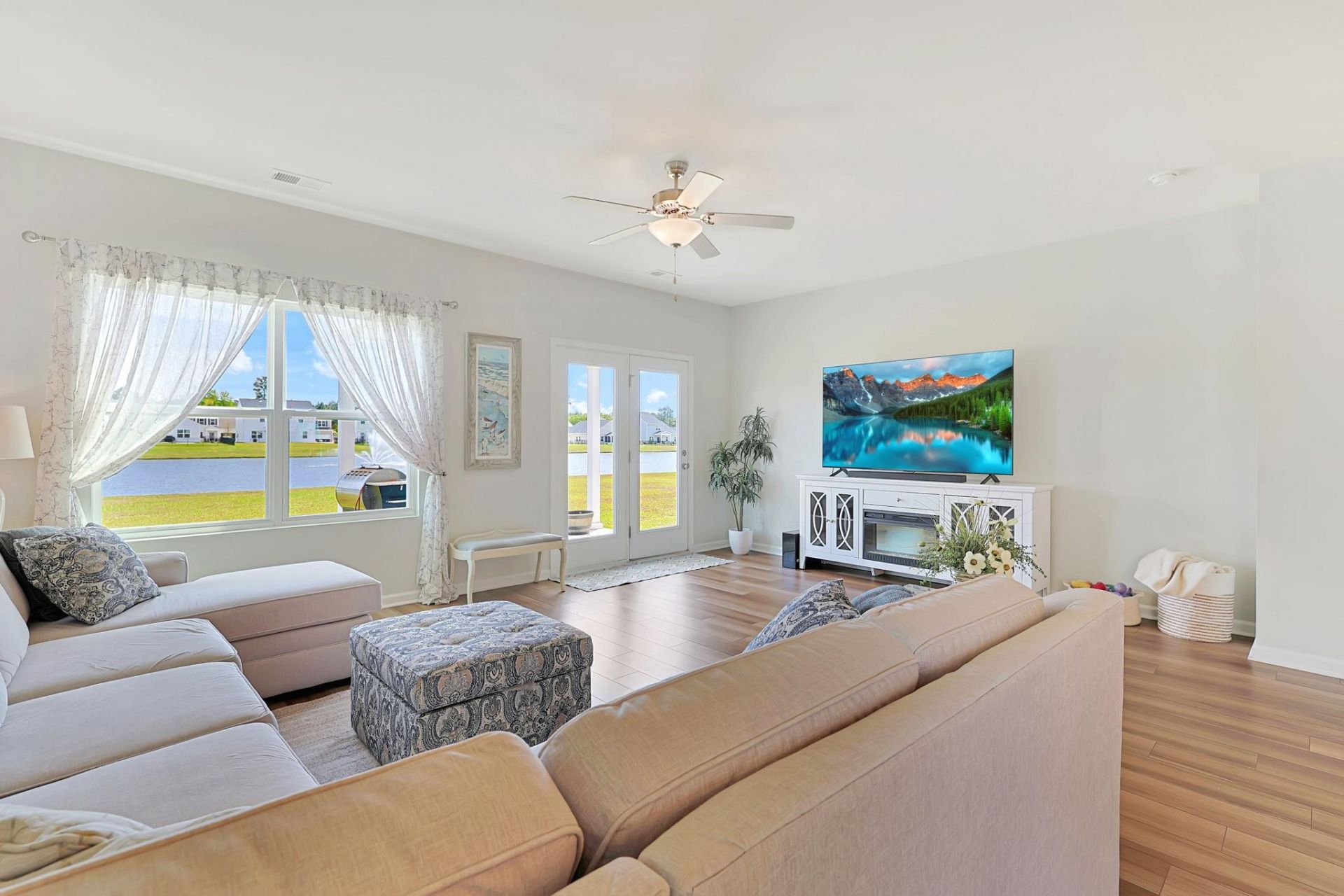 Presenting this distinctive two story 4 bedroom 2.5 bath home located in the very popular Coastal Point West community. This stylish home has wood looking LVP & carpet flooring, smooth flat ceilings, a guest powder room, an open floor plan with an abundance of natural light, a day parlor, and a classic living/dining room combo that showcases French door access to the cover back patio overlooking the tranquil lake. The family friendly kitchen is equipped with an upgraded stainless steel appliance package which includes a gas top range with a double oven, built-in microwave, French door smart refrigerator with freezer drawer, dishwasher, granite counter tops, single basin sink with high arc spray faucet, a breakfast bar, tile back splash, cabinets with crown moulding, and a kitchen pantry with ideal shelving. The main level primary suite offers a vaulted ceiling with fan, memorable lake views, private access to the primary bath hosting a dual sink vanity, a water closet, a linen closet, a deluxe step-in shower, and a large custom built walk-in closet. Upstairs begins with a peaceful loft area with a closet, three additional bedrooms; all with walk-in closets, and a full guest bath. This vibrant home is completed with a practical laundry closet with a x-large capacity washer & dryer with steam, front screen/glass storm door with a bluetooth front main door lock, an irrigation system, manicured landscaping, accent exterior lighting, and a 2 car attached garage with wifi garage door opener. This home affords you easy access to the beach and golfing along with all of the other activities and happenings in Myrtle Beach & Conway including fun eateries, award winning off-Broadway shows, public fishing piers, Conways historic riverwalk, and intriguing shopping adventures along the Grand Strand. Conveniently located to your everyday needs, including grocery stores, banks, post offices, medical centers, doctors offices, and pharmacies. Check out our state of the art 3-D Virtual Tour. Floor plans are generated from a virtual tour camera and are for estimate purposes only. Square footage is approximate and not guaranteed. Buyer responsible for verification of all information.